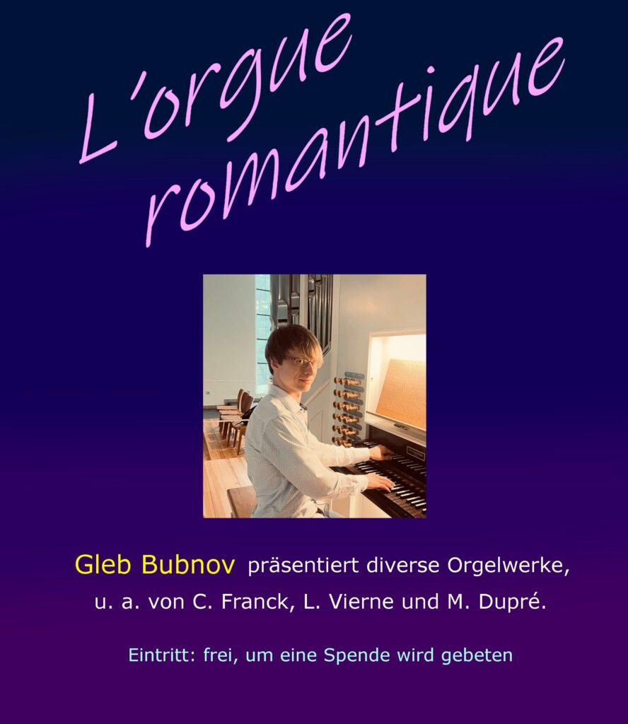 „L’orgue romantique“ – Der Organist Gleb Bubnov präsentiert diverse Orgelwerke von C. Frank, L. Vierne und anderen.