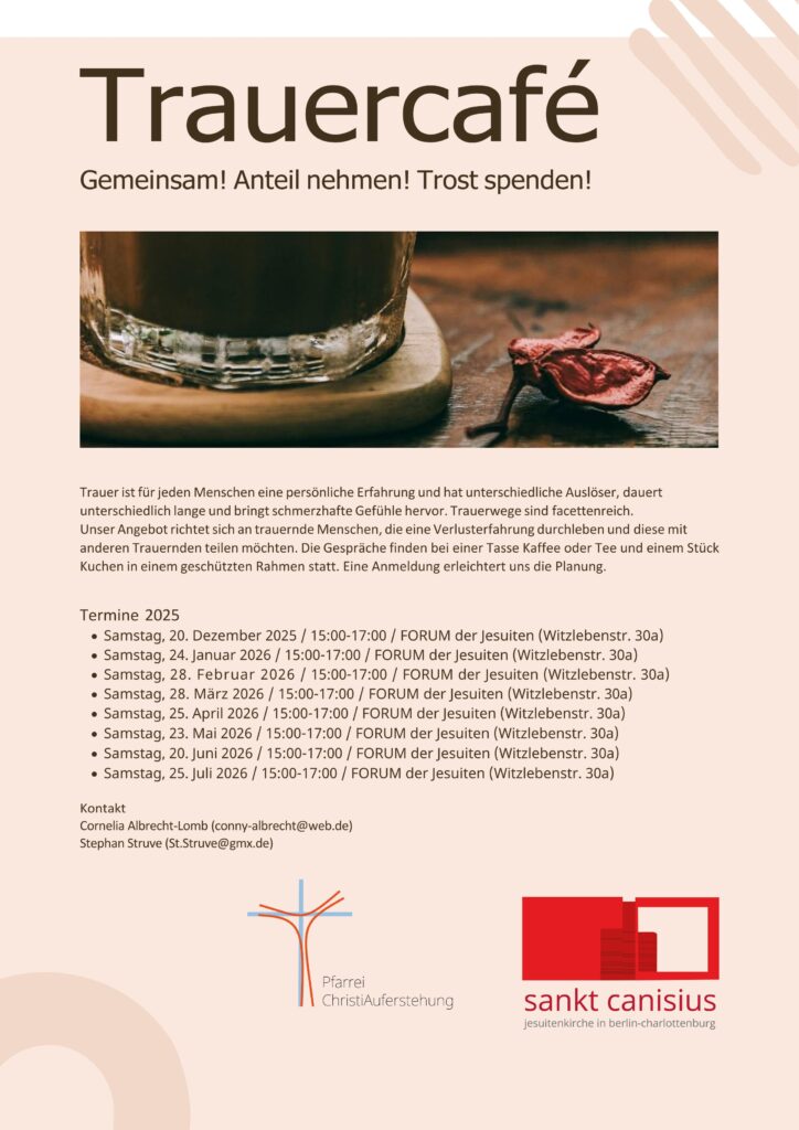 Das Trauercafé-Plakat mit allen Terminen für das 1. Halbjahr 2026 im Anschluss: