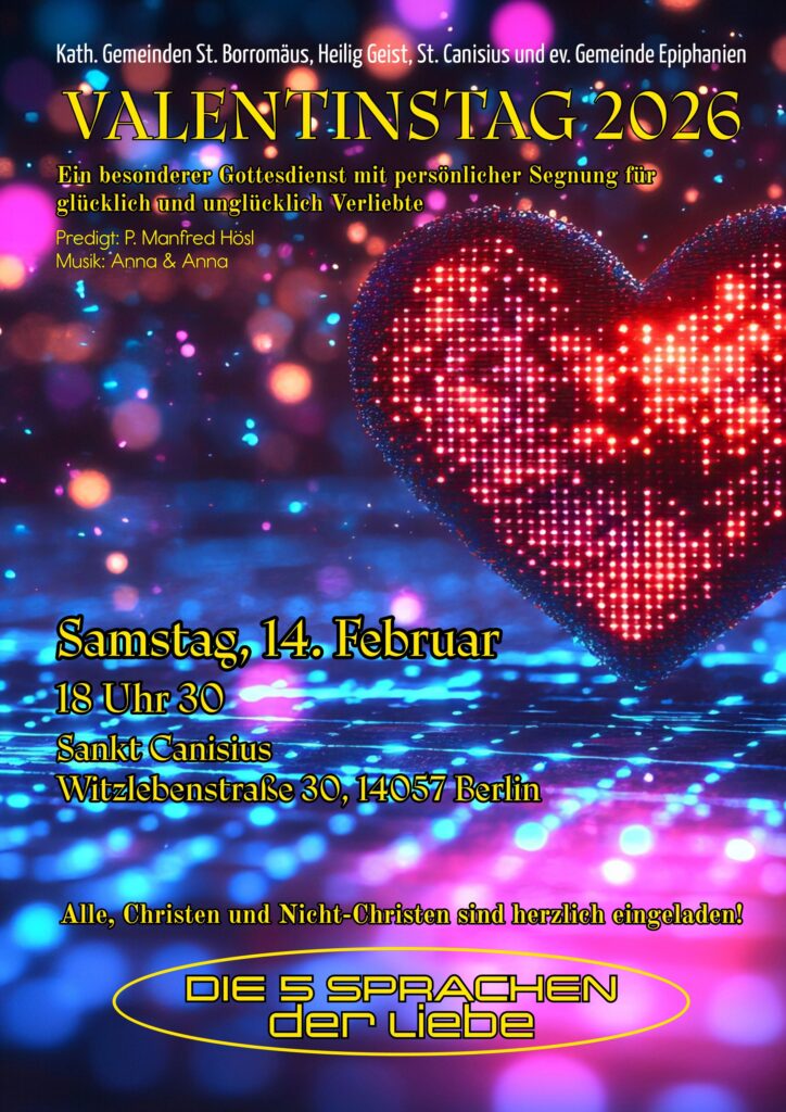Die katholischen Gemeinden der Pfarrei Christi Auferstehung sowie die evangelische Epiphaniengemeinde laden ein zum diesjährigen Valentinstag.