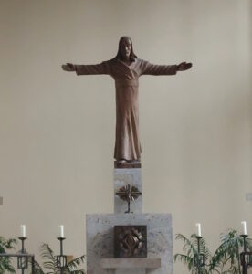 Die ausgebreiteten Hände Jesu wollen die Liebe Gottes an alle Menschen verschenken. Besonders an die Kinder. Der Gottesdienst war speziell für die Kinder gemacht. Kurze und leichte Texte. Der Hauptgedanke aus dem Buch Josua: „Sei mutig und stark – ich lasse dich nicht im Stich.“ Auch die stimmungsvolle Musik brachte Freude und machte Mut. Es gab viele fröhliche Gesichter im Gottesdienst.