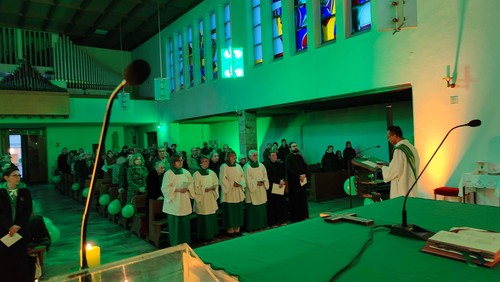 Der Saint Patricks Day in St. Salvator ist eine feste Bank in der Pfarrei Christi Auferstehung. Wie in den letzten Jahren hat das Vorbereitungsteam in St. Salvator den Tag fantasievoll vorbereitet. Robert hatte schon Tags zuvor wieder sein leckeres irisches Brot gebacken. Frank hatte eine deftige Kartoffelsuppe gezaubert. Andere steuerten mehrere Backformen Shepherd‘s Pie bei, es gab Gebäck, Guinness und Kilkenny, Irish Coffee, irischen Whiskey und Cider. Na, dann Prost! Bzw. „Lá Fhéile Pádraig sona duit! - „Happy St. Patrick's Day!“ und natürlich Slainthe (Sprich: Slancha). Für die wenigen irischen Kostverweigerer gab es übrigens sogar Wein oder eine klassisch deutsche Bratwurstsemmel.